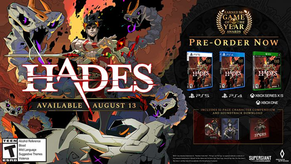 Кроме того, в состав издания войдет брошюра-артбук с изображениями различных обитателей мира игры Hades, созданными главным художником Supergiant Games – лауреатом премии BAFTA Джен Зи.